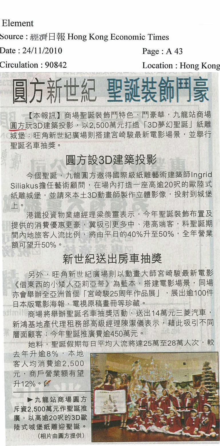 Christmas decorations/solo exhibition at shopping mall 'Elements', Hong Kong.