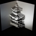 Cut/folded out of a single piece of paper (30 by 60 cm). This piece can be unfolded and brought back to a flat surface.